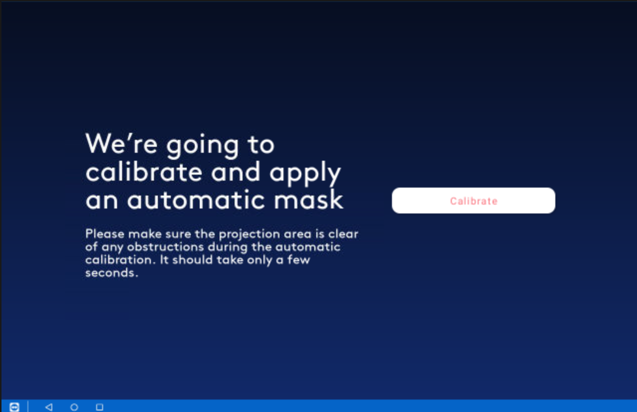 5. Press Calibration. This takes a few minutes, Ensure the surface is clear of objects and people.